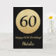Happy 60th Birthday Black and Gold Glitter Card with personalized name. For further customization, please click the "Customize it" button and use our design tool to modify this template.