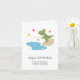 This cute humorous Happy 60th Birthday Card features a cartoon illustration of funny Dinosaur. Dino stands with the fishing rod besides the water awaiting for the big fish. Illustration is done in warm summer colors: green, yellow, and soft blue. Great card to send to dad, grandpa, brother on the occasion of his sixtieth birthday, especially if he is a fishing fan. You can easily personalize the text (greeting and name) using Zazzle online tools.