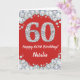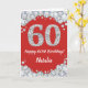 Happy 60th Birthday Red and Silver Glitter Card with personalised name. For further customisation, please click the "Customise it" button and use our design tool to modify this template.