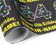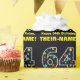 This fun birthday-themed wrapping paper design features a large number "64" filled with a pattern of star shapes of various colours and sizes, along with the message "Happy 64th Birthday,", and a customisable name. The background is coloured black. Wrapping paper like this might be a fun way of wrapping a birthday present or gift being given to somebody who is celebrating their sixty fourth birthday. [~Z0000429]