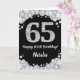 Happy 65th Birthday Black and Silver Glitter Card with personalised name. For further customisation, please click the "Customise it" button and use our design tool to modify this template.