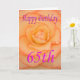 A Birthday greeting card with an image of a beautiful yellow flower with pink trim to each of its petals. The card has the massage “Happy 65th Birthday” in pink lettering. All work and images by martinspixs, come back again soon to see new greeting cards.