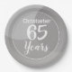 Celebrate a birthday with a personalised plate showing recipient's name, and number of years. Paper plate for a 65 year old.