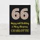 The front of this fun and simple Christmas-themed and birthday-themed December 25th birthday greeting card design features a large number "66" with a red/white/green stripes pattern, along with the message "Happy 66th Birthday & Merry Christmas,", and a personalised name. The background of the front is coloured black. The inside features a customised birthday greeting message, or could perhaps be cleared and left blank if a message is to be written by hand instead. A personalised birthday card like this might be a fun way to send a message in celebration of somebody’s sixty sixth birthday that also falls on December 25th (Christmas Day). [~Z0000405]