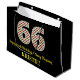 This simple and fun Christmas themed and birthday themed December 25th birthday gift bag design features a large number "66", with a green, white, and red stripes pattern. It also features the message "Happy 66th Birthday & Merry Christmas,", and a customisable name. The background is coloured black. A gift bag like this might be a fun way to wrap presents that are being given to somebody who was born on Christmas Day (December 25th) and who is celebrating their sixty sixth birthday. [~Z0000407]