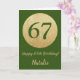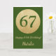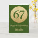 Happy 67th Birthday Green and Gold Glitter Card with personalised name. For further customisation, please click the "Customise it" button and use our design tool to modify this template.