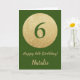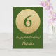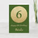 Happy 6th Birthday Green and Gold Glitter Card with personalised name. For further customisation, please click the "Customise it" button and use our design tool to modify this template.