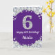 Happy 6th Birthday Purple and Silver Glitter Card