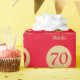 Happy 70th Birthday Red and Gold Glitter Wrapping Paper with personalised name. For further customisation, please click the "Customise it" button and use our design tool to modify this template.