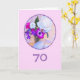 A simple but elegant 70th birthday card with a flower painting. A painting of a vase of flowers is framed in daisies. The whole is on a delicate pink background. The inside message can be changed to your requirements.