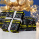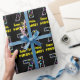 This fun birthday themed wrapping paper design features a large number "71", filled with a pattern of decorative star shapes having various sizes and colours. It also features the message "Happy 71st Birthday,", and a personalised name. The background is coloured black. Fun wrapping paper like this might be used when wrapping presents being given to somebody in celebration of their seventy first birthday. [~Z0000429]