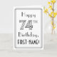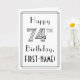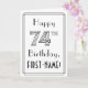 The front of this luxurious Roaring Twenties art deco inspired birthday greeting card design has the message “Happy 74th Birthday,” and a customisable recipient name. The number “74th” on the front has a fancy lined appearance, and there is also a multi-line border. The inside features a customisable birthday greeting message, or could perhaps be cleared and left blank if a message is to be written by hand instead. An elegant, editable birthday greeting card like this might be a fun way to deliver some birthday wishes to somebody who is celebrating their seventy-fourth birthday. [~Z0000641]