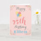 Colourful Floral Custom Birthday Card Featuring Happy 75th Birthday Greeting And Balloon Design.