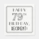 This elegant Roaring Twenties era inspired art deco look birthday-themed paper napkin design has the message “HAPPY 79TH BIRTHDAY,”, along with a customisable recipient name. The number “79TH” has a fancy geometric lined look, and there is also a lined border around the birthday greeting message. Birthday themed paper napkins like this might be a fun way to celebrate somebody’s seventy-ninth birthday. [~Z0000644]