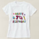Happy 7th Birthday. Funny and cute Birthday design with lovely teddy bear holding a gift and a funny pencil writing the birthday wishes. A perfect match for clothing, shirts and accessories.