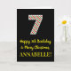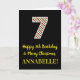 The front of this simple and fun Christmas-themed and birthday-themed December 25th birthday greeting card design features a large number "7" with a red/white/green stripes pattern, along with the message "Happy 7th Birthday & Merry Christmas,", and a personalised name. The background of the front is coloured black. The inside features a personalised birthday greeting message, or could perhaps be cleared and left blank if a message is to be written by hand instead. A custom birthday card like this might be a fun way to send birthday wishes to somebody who is celebrating their seventh birthday and who was also born on Christmas Day (December 25th). [~Z0000405]