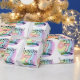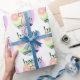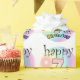 Roze gelukkige zevende verjaardag. Leuk om te geven als cadeau aan iemand die zeven jaar is geworden. Vrolijk design met regenboog kleuren.