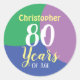 80th birthday stickers. Celebrate a birthday with a personalised sticker showing recipient's name, and number of years. Sticker for a 80 year old.