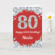 Happy 80th Birthday Red and Silver Glitter Card with personalised name. For further customisation, please click the "Customise it" button and use our design tool to modify this template.