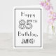 The front of this elegant 1920s-1930s art deco inspired birthday-themed greeting card design has the message “Happy 85th Birthday,” and a personalised recipient name. The number “85th” on the front has a fancy lined look, and there is also a multi-line border. The inside features a custom birthday greeting message, or could perhaps be cleared and left blank if a message is to be written by hand instead. A stylish, customisable birthday greeting card like this might be sent to celebrate somebody’s eighty-fifth birthday. [~Z0000641]