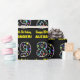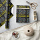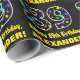 This fun birthday-themed wrapping paper design features a large number "89", filled with a pattern of star shapes of various sizes and colours. It also features the message "Happy 89th Birthday,", and a customisable name. The background is coloured black. Fun wrapping paper like this might be used when wrapping presents being given to somebody in celebration of their eighty ninth birthday. [~Z0000429]