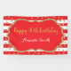 Happy 90th Birthday Banner for women or man. Red and Gold Birthday Party Banner. Gold Glitter Confetti. Black and White Stripes. Printable Digital. For further customisation, please click the "Customise it" button and use our design tool to modify this template.