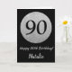 Happy 90th Birthday Black and Silver Glitter Card with personalised name. For further customisation, please click the "Customise it" button and use our design tool to modify this template.