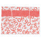This over-the-hill numeric design is a coral and white random number pattern with milestone number 90 repeated in varied sizes and angles in an all-over print. There is a printed ribbon banner and gift tag with text templates so you can easily personalise them with your own words, name, initial, or monogram.