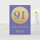 Happy 91st Birthday and Gold Glitter Card with personalised name. For further customisation, please click the "Customise it" button and use our design tool to modify this template.