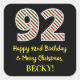 Happy 92nd Birthday & Merry Christmas, Custom Name Square Sticker