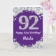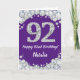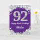 Happy 92nd Birthday Purple and Silver Glitter Card