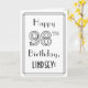 The front of this stylish 1920s-1930s art deco inspired birthday themed greeting card design features the message “Happy 98th Birthday,” and an editable recipient name. The number “98th” on the front has a fancy lined look, and there is also a lined border. The inside has a customisable birthday greeting message, or could perhaps be cleared and left blank if a message is to be written by hand instead. An elegant, editable birthday greeting card like this might be sent in celebration of somebody’s ninety-eighth birthday. [~Z0000641]