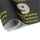 This fun and simple Christmas themed and birthday themed December 25th birthday wrapping paper design features a large number "9" with a green, white, and red stripes pattern, along with the message "Happy 9th Birthday & Merry Christmas,", and a personalised name. The background is coloured black. Wrapping paper like this might be used when wrapping gifts or presents that are being given to somebody who was born on December 25th (Christmas Day) and who is celebrating their ninth birthday. [~Z0000406]