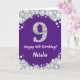 Happy 9th Birthday Purple and Silver Glitter Card with personalised name. For further customisation, please click the "Customise it" button and use our design tool to modify this template.