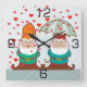 Two cute Gnomes Graphic Design. One who's happy and one who's grumpy and holding an umbrella so that the rain falling hearts won't touch him. It's raining hearts and love! With black numbers.