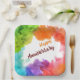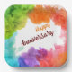 Paper plate with a happy anniversary message The happy anniversary paper plate held a special place in our hearts, representing the joy and excitement of celebrating another year together .