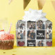 Romantic anniversary photo collage wrapping paper with a couple's engagement photos or wedding pictures next to a chic red heart and elegant black squares with personalised white script.