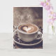 Coffee with heart, beans, and steam for anniversary for spouse.