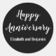 Happy Anniversary Couple's Names Black and White Classic Round Sticker
