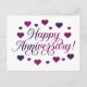 Happy Anniversary Purple Hearts Romantic Elegant Postcard