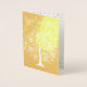 Happy Anniversary Whimsical Tree Flowers Card. Gold foil background, whimsical tree in bloom, and Happy Anniversary on the front side. Customisable wish, your name, flowers on the inside. Cute, modern and simple.
