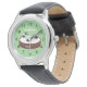 The leather band makes it seem like an “older kids” watch. Easy to read the time. Clear printing and image.