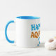 Happy Aquarium Ringer Mug. Handle and lip of the mug are coloured to match. 11 oz. or 15 oz. Available in 6 colours. Dishwasher and microwave safe. Imported.