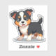 Cute Aussie Shepherd puppy with oversized chibi eyes and kawaii details, great for stickers, scrapbooking, and gifts for dog lovers.