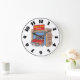 There is no better way to clean your car than go through a car wash. This design is the perfect example with a cartoonish red car going through a car wash. The car wash has a big sign above it that says happy auto car wash. Then a tag line of because a clean car is a happy car. This happy auto car wash design looks great on this clock. Perfect for yourself or as a gift
