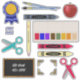 For teachers or students, just a mix of school supplies including a blue ribbon and first place text, paint brushes, an apple, crayons, a watercolor pencil, watercolor paint palette, a chalk board and you can add your text on it, scissors and photo corners that look like real gold metal! Random school stuff, so fun! Designed by Cherie's Art ***This size only as these images will become too close together and not seperated if smaller!