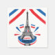 Festive Bastille Day design with the Eiffel Tower, French flags, and red, white, and blue marks. Image from vecteezy.com.