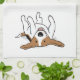 Funny Beagle cartoon dog laying on back with legs in the air. This cute decorative kitchen towel makes a thoughtful housewarming gift or holiday stocking stuffer for a dog mum, dog dad, or anyone who loves Beagles! Visit Jenn’s Doodle World for even more original dog breed themed home decor and animal lover designs.
