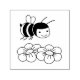 Black and white illustration of an adorable smiling bee hovering above the flowers.