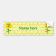 This fun car sticker features a graphic image of a cute yellow bumblebee with black stripes, eyes, antennas and legs. It has pretty blue and white wings. The bee is sitting on the middle of a golden yellow sunflower. The flower has a green stalk and three leaves. The message "happy bee day" appears spread over the three leaves. The background is composed of a yellow honeycomb pattern. There is custom text so you can include a name.